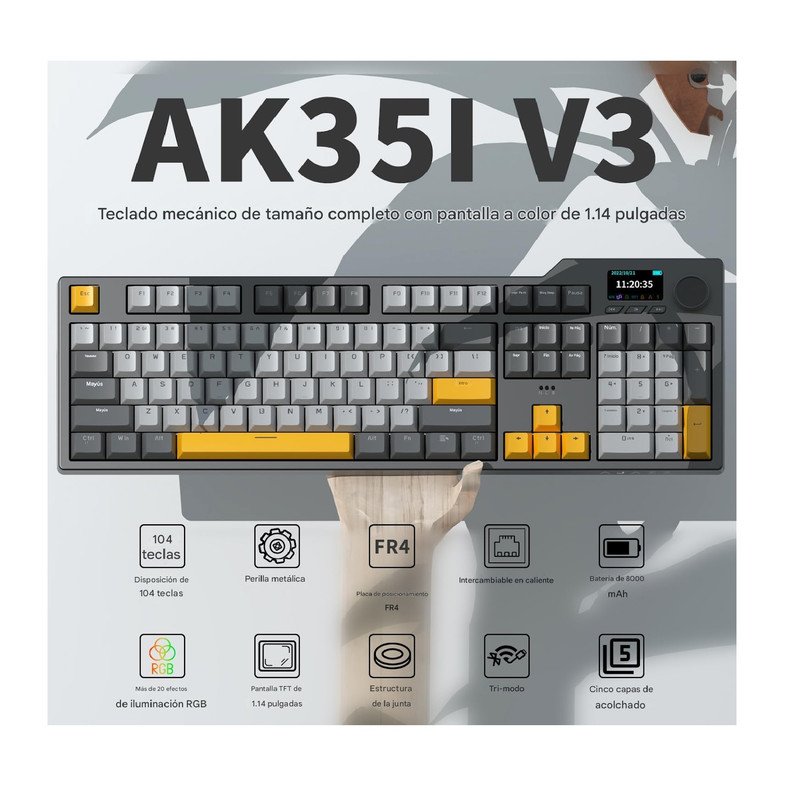Teclado Mecánico Gamer Inalámbrico Daidai Ak35i V3 Rgb