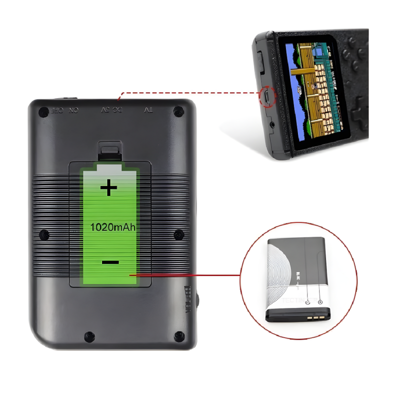 Miniconsola de videojuego portátil con 500 juegos retros color negro