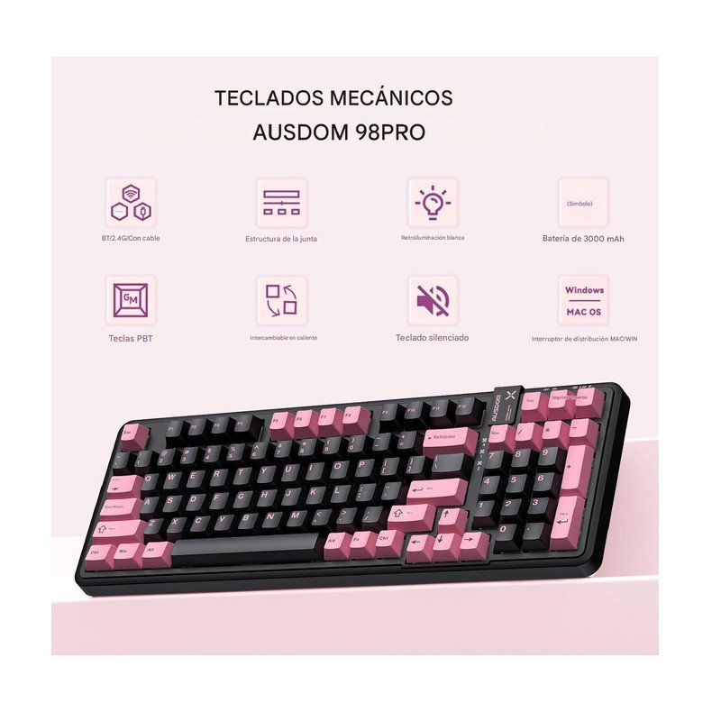 Teclado Gamer Inalámbrico Ausdom 98 Pro Con Rgb