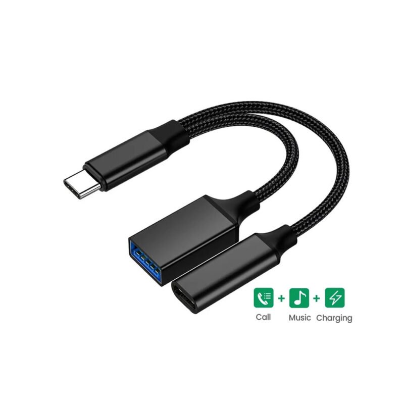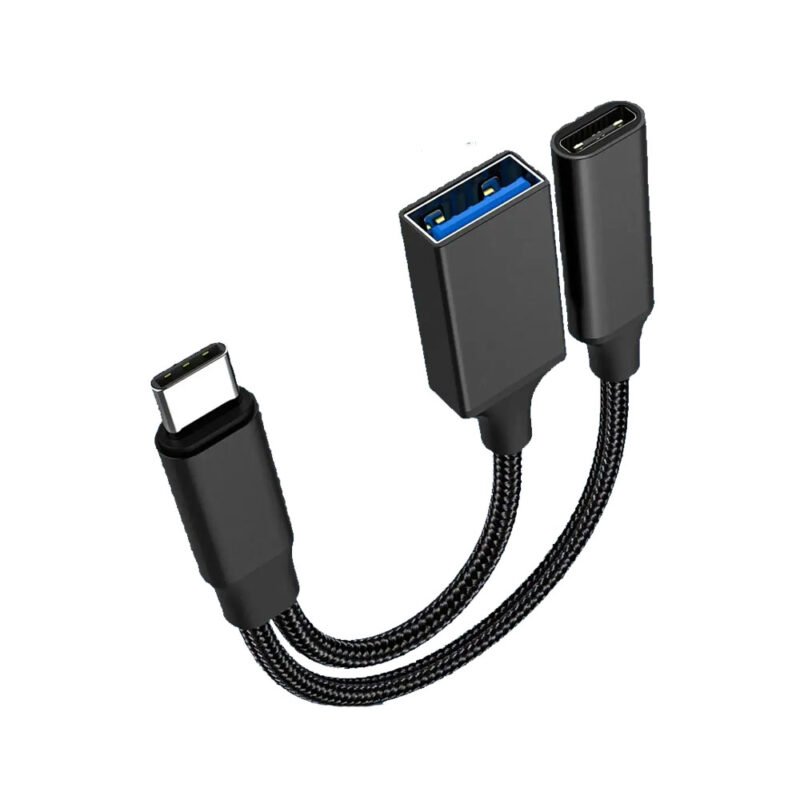 Adaptador OTG 2 en 1, transferencia de datos y carga para Celulares y Tablets negro