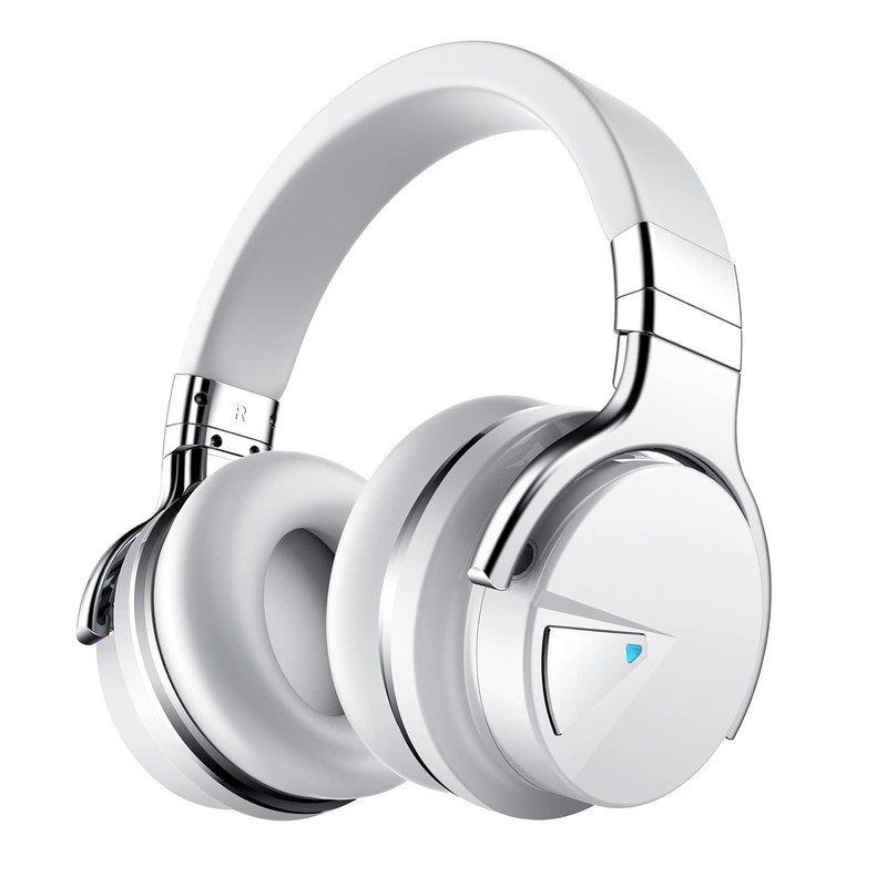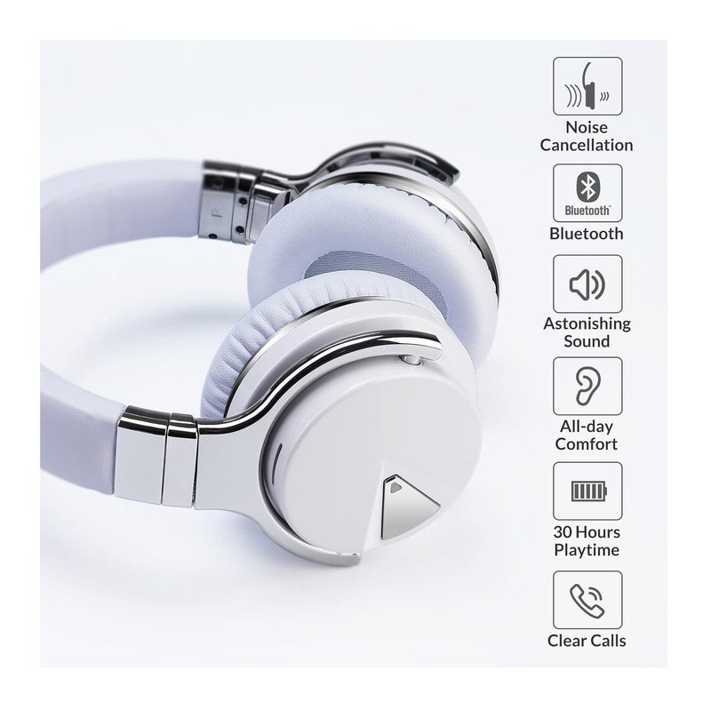 Auriculares cSilensys E7 on cancelación activa, micrófono de graves profundos, color blanco