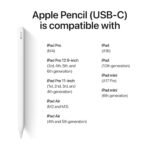 Compatibilidad: Apple Pencil (USB-C) funciona con iPad Pro de 13 pulgadas (M4); iPad Pro de 12.9 pulgadas (3ª, 4ª, 5ª y 6ª generación); iPad Pro de 11 pulgadas (M4); iPad Pro de 11 pulgadas (1ª, 2ª, 3ª y 4ª generación); iPad Air de 13 pulgadas (M2); iPad Air de 11 pulgadas (M2); iPad Air (4ª generación). y quinta generación ); iPad mini (A17 Pro), iPad mini (6ª generación); y iPad (10ª generación).