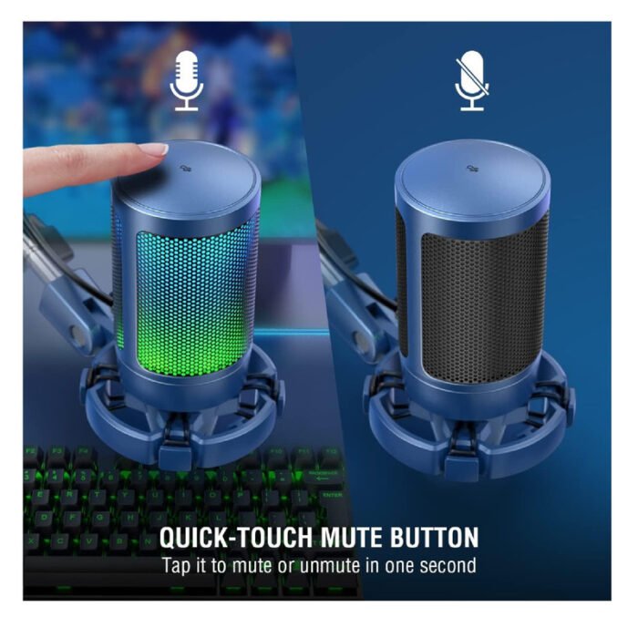 Llama más atención: el cambio automático RGB bajo el micrófono de transmisión de color azul para juegos de PC hace que tu juego de disparos o de rol sea más realista y vívido. La luz animada reflejada en el micrófono de PC enriquece tu video de juego o escena de transmisión. El micrófono USB de color azul para PC te coloca en la parte superior del listado de video o transmisión en Youtube.