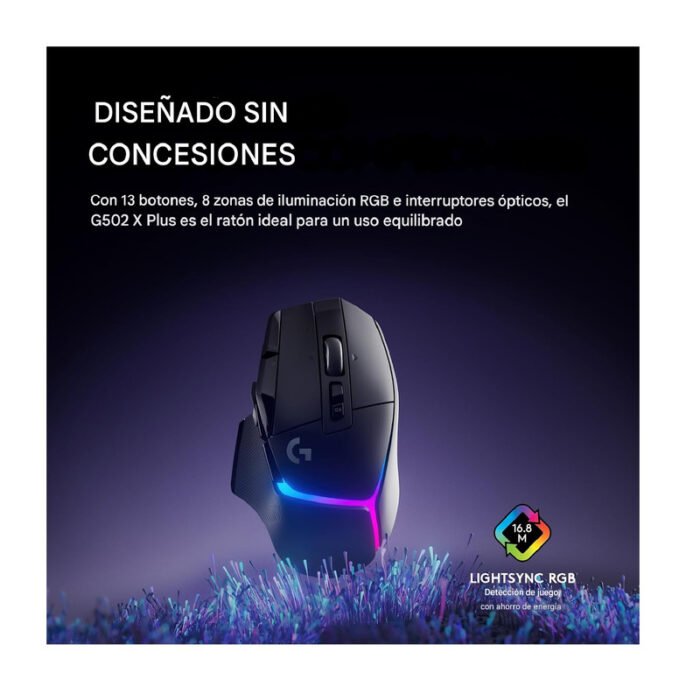 Logitech G Ratón inalámbrico para juegos 502 X Plus, óptico LIGHTSPEED, interruptores LIGHTFORCE, LIGHTSYNC RGB, sensor HERO 25K para PC/Mac, color negro