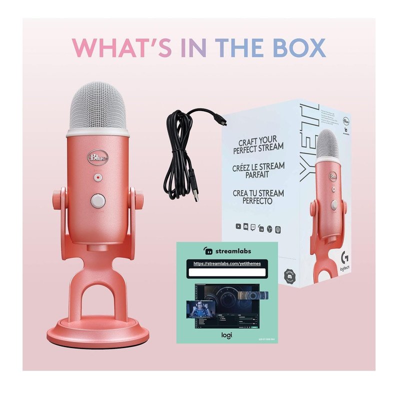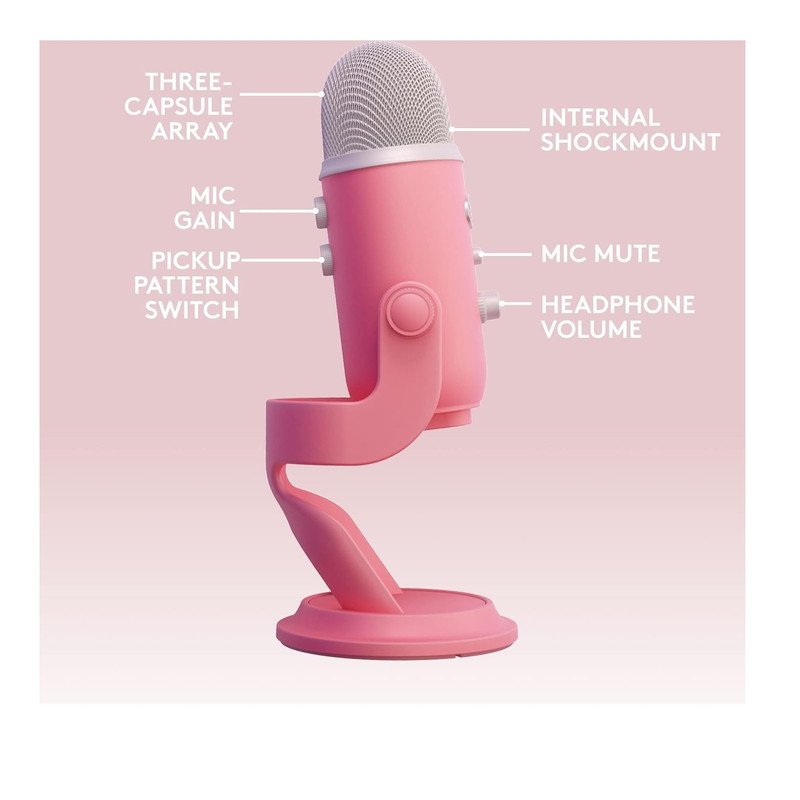 Logitech for Creators Blue Yeti – Micrófono USB para videojuegos, para transmisión, pódcasts, Twitch, YouTube, Discord, PC y Mac, sonido de calidad de estudio, Plug & Play, pink
