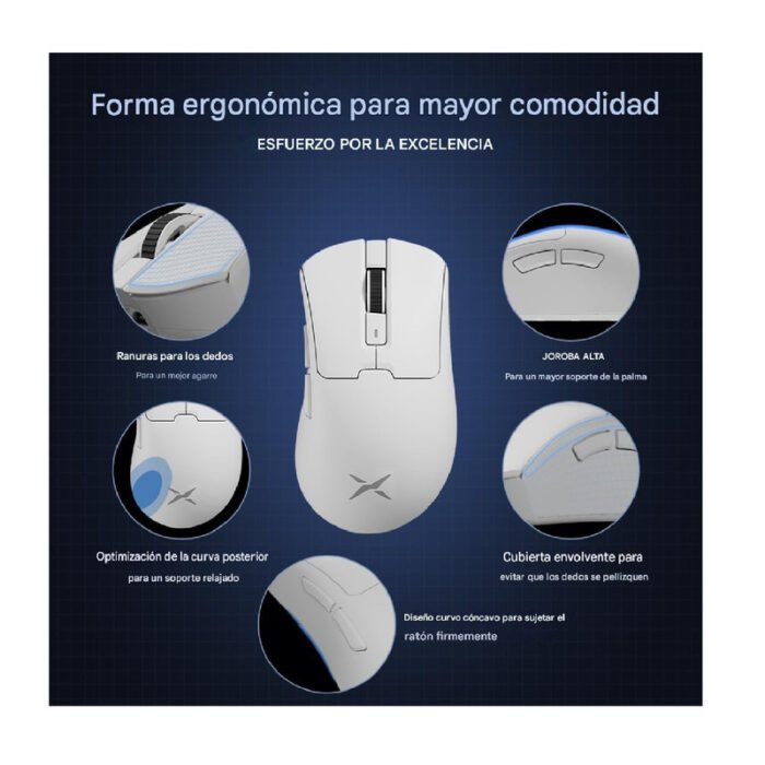 Diseño ergonómico asimétrico: un ratón mediano a grande de tan ligero como 2.22 oz ultraligero, diseñado específicamente para adaptarse a los contornos naturales de la mano derecha para mejorar la experiencia de juego, reduciendo la fatiga y la tensión durante sesiones de juego prolongadas
