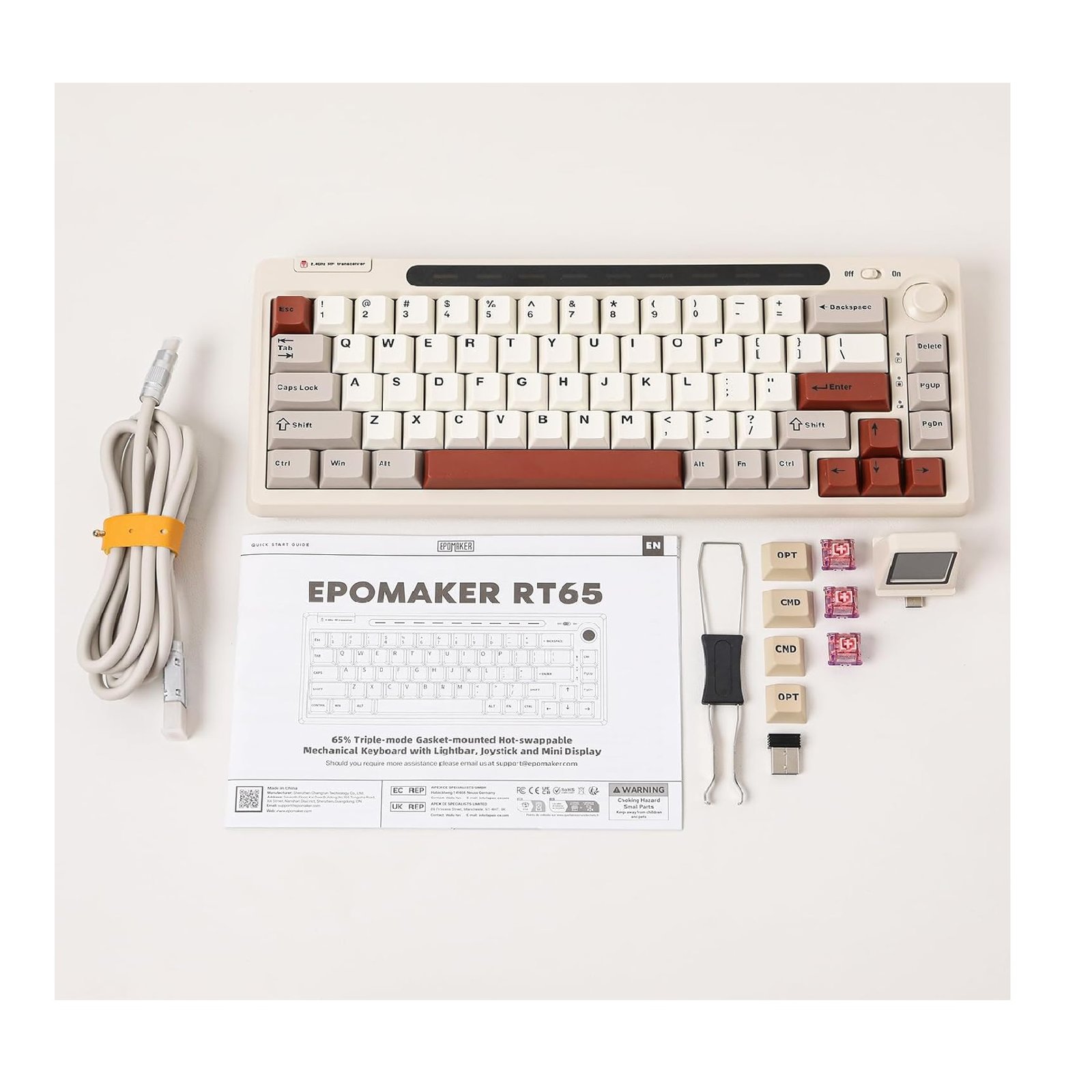 EPOMAKER RT65 Wireless Tri-Mode 65% Mechanical Keyboard, Hot-swap Creamy Custom Gaming Keyboard, with Mini Display and Joystick, RGB Backlit, NKRO (Retro Grey, Wisteria Linear Switch)