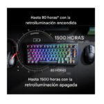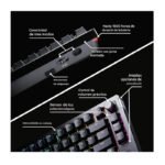 Estabilidad y fiabilidad superiores de las pulsaciones de teclas: los interruptores lineales HyperX tienen un vástago POM de media pared para una mejor estabilidad de las teclas HyperX PBT preinstaladas5. También están lubricados de fábrica para un accionamiento suave y clasificados para hasta 80 millones de pulsaciones de teclas.