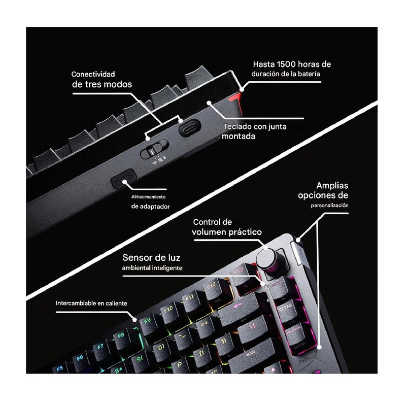 HyperX Alloy Rise 75 Wireless – Teclado mecánico para juegos 75% intercambiable en caliente, PC, hasta 80 horas de retroiluminación encendida, doble inalámbrico de 2.4 GHz y Bluetooth