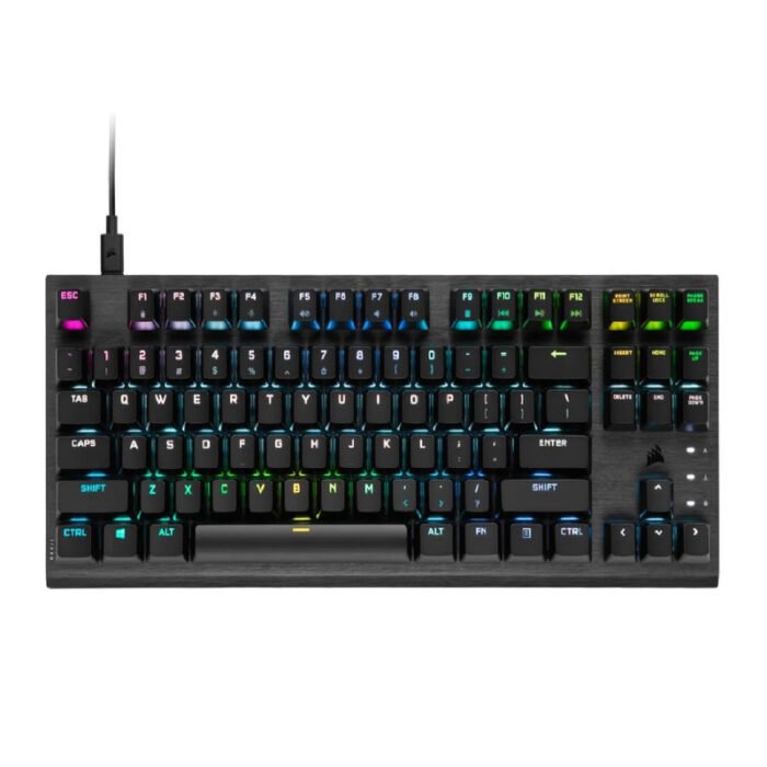 CORSAIR K60 RGB TKL RGB Teclado óptico mecánico para juegos con cable sin llave – Interruptores OPX – Teclas de policarbonato – Compatible con iCUE – Diseño QWERTY NA – Negro