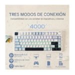 Conectividad de tres vías para cada escenario y batería de 4000 mAh: ofrece Bluetooth, conexión inalámbrica de 2.4 GHz y USB con cable, el F75 se adapta a tus necesidades específicas. Ya sea para una configuración inalámbrica sin desorden o una conexión por cable estable, este teclado está listo para cualquier situación. Equipado con una gran batería de 4000 mAh, el F75 ofrece tiempos de uso prolongados. Esta generosa capacidad de la batería garantiza que su teclado esté siempre listo para largas sesiones de trabajo o maratones intensos de juego.