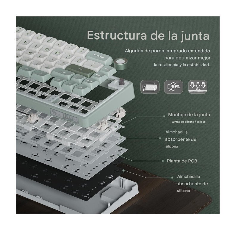 Teclado mecánico de montaje en junta al 60%: el teclado compacto para juegos adopta una estructura de junta con cinco capas de material que absorbe el sonido. Hay algodón porón para almacenar en búfer entre la placa PCB del teclado y la carcasa, lo que puede reducir eficazmente el ruido y vibrar de las teclas, optimizar el sonido de los interruptores y proporcionar una mejor experiencia de escritura